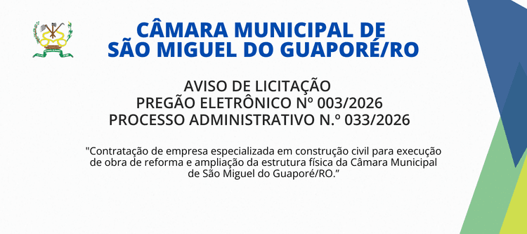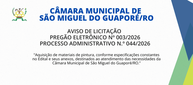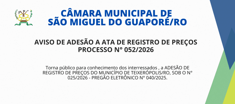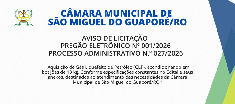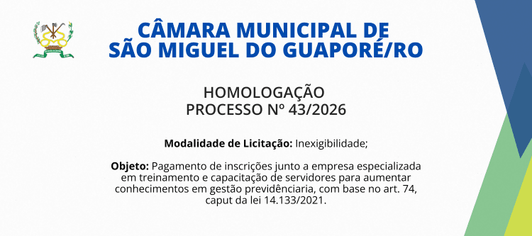 Horário de funcionamento da Câmara: Segunda à Sexta – 7h30 às 13h30